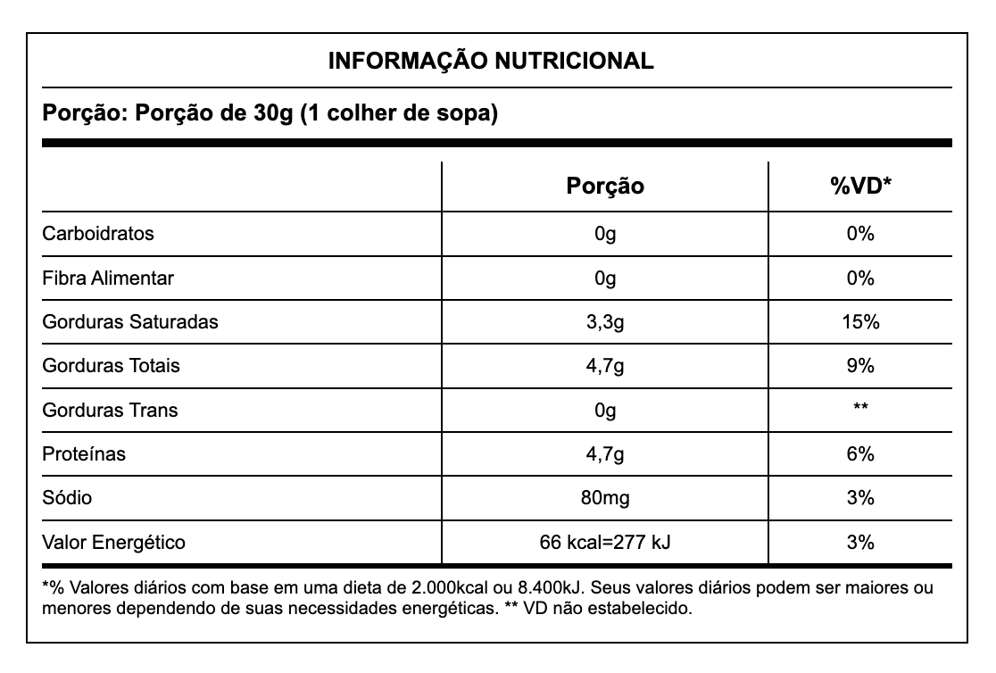 Queijo Emmental, Agua, Vinho Branco, Queijo Comté, Queijo Tomme, Amido de Milho Modificado, Alho, Kirsch, Sal e Pimenta Branca. Alergênicos: Contém leite e lactose.