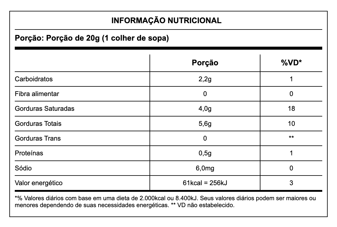 Creme de leite pasteurizado, açúcar, emulsificante esteres de mono e diglicerídeos de ácidos graxos, aroma artificial de baunilha, estabilizante carragena, e gases propelente óxido nitroso e nitrogênio. Alergênicos: Contém leite. Contém lactose. Não contém glúten.