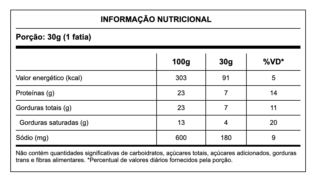 Leite pasteurizado, cloreto de cálcio, cloreto de sódio (sal), coagulante (enzima microbiológica) e fermento lático. Contém Lactose. Não contém Glúten.