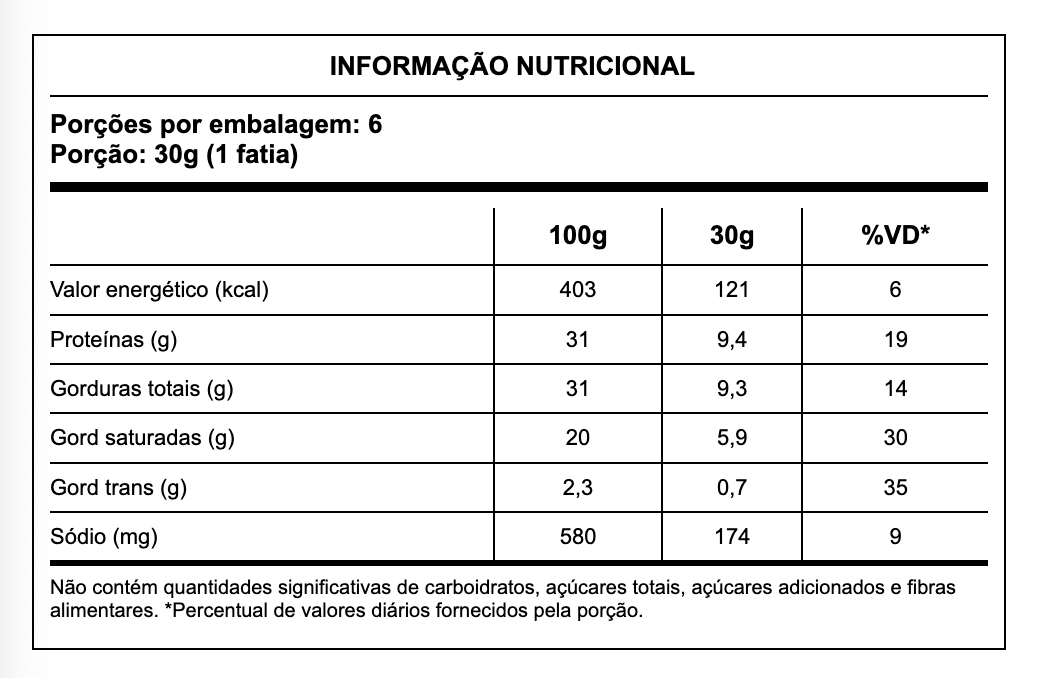 Leite pasteurizado, cloreto de sódio (sal), cloreto de cálcio, coalho e fermento lácteo. Alergênicos: Contém leite e lactose. Não contém glúten.